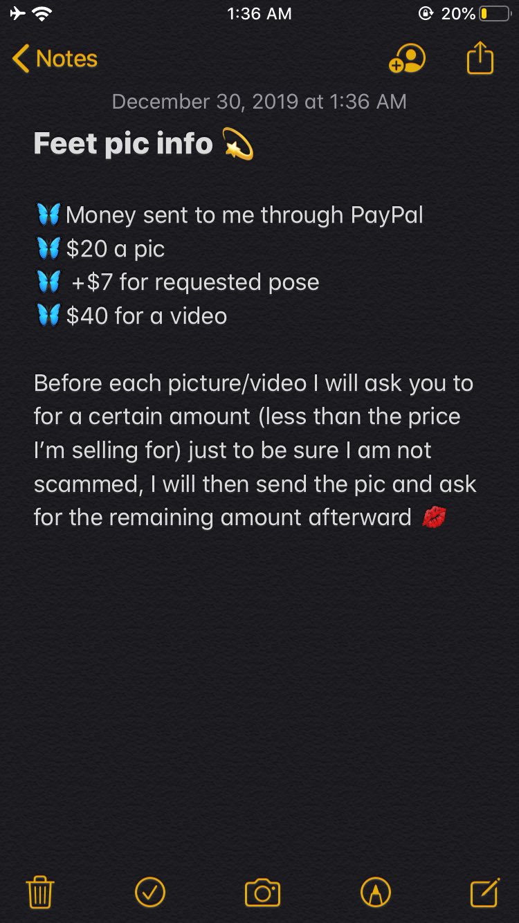 Mar 11, 2020 · well selling them feet pictures is no different.